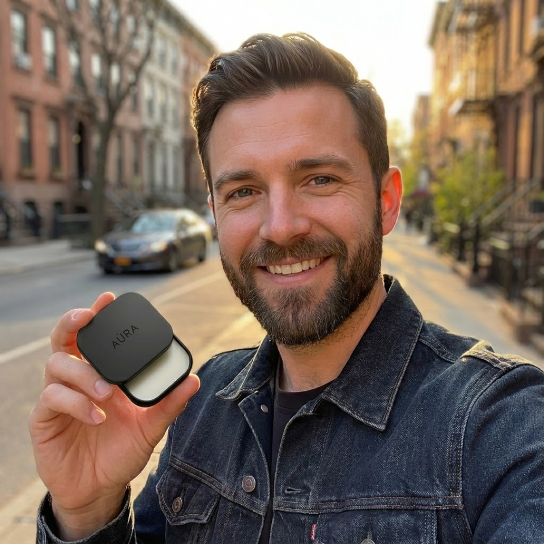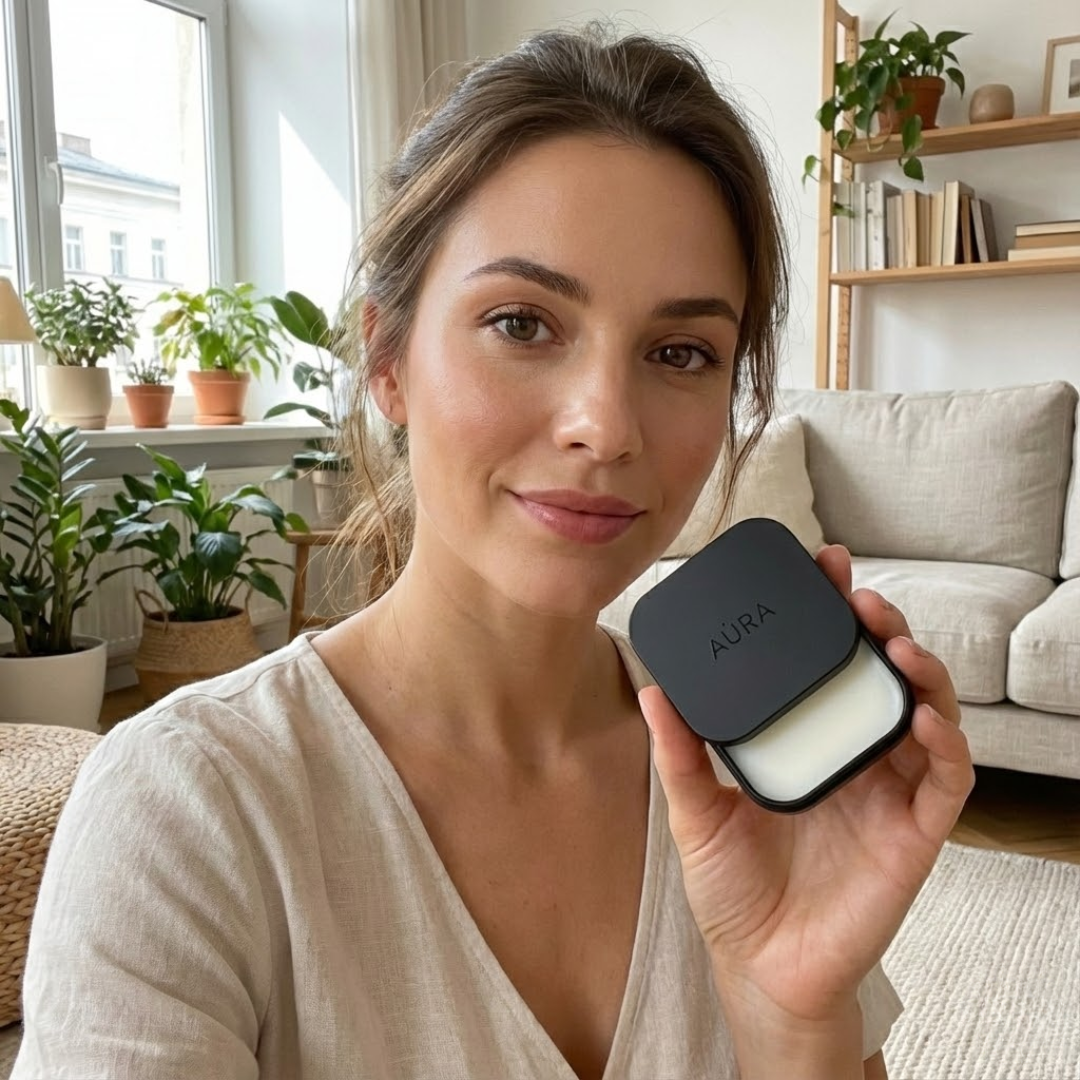 AÙRA е компактна ароматна капсула с премиум парфюмен балсам, който се нанася лесно и оставя дълготрайно, деликатно ухание върху кожата.